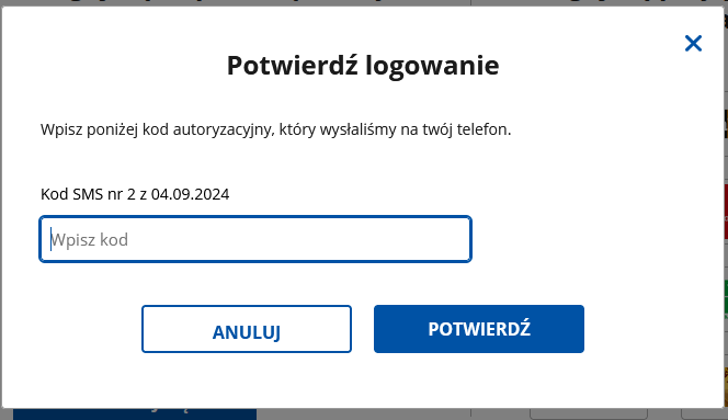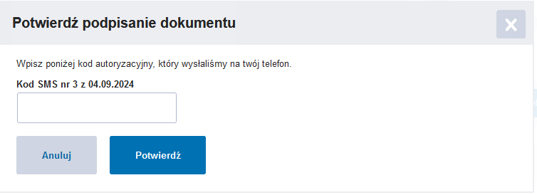 7. Następnie pojawi się prośba o ponowne potwierdzenie kodem SMS-owym: