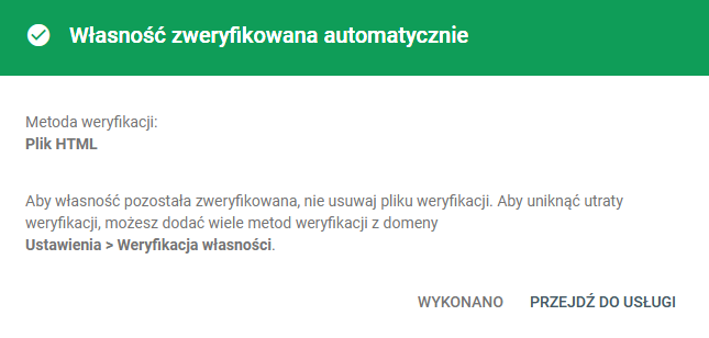 Jeśli proces weryfikacji przebiegł pomyślnie, to pojawi się stosowny komunikat: