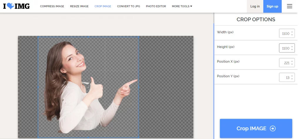 Jeśli chcesz wykadrować zdjęcie, przejdź na stronę www.iloveimg.com i wybierz z menu głównego opcję „Crop image”. Cały proces przeprowadzisz ręcznie. Możesz też wpisać odpowiednie wartości w polach „szerokość” oraz „wysokość” i manipulując pozycją w pionie i w poziomie, zdecydować o ostatecznej formie grafiki.