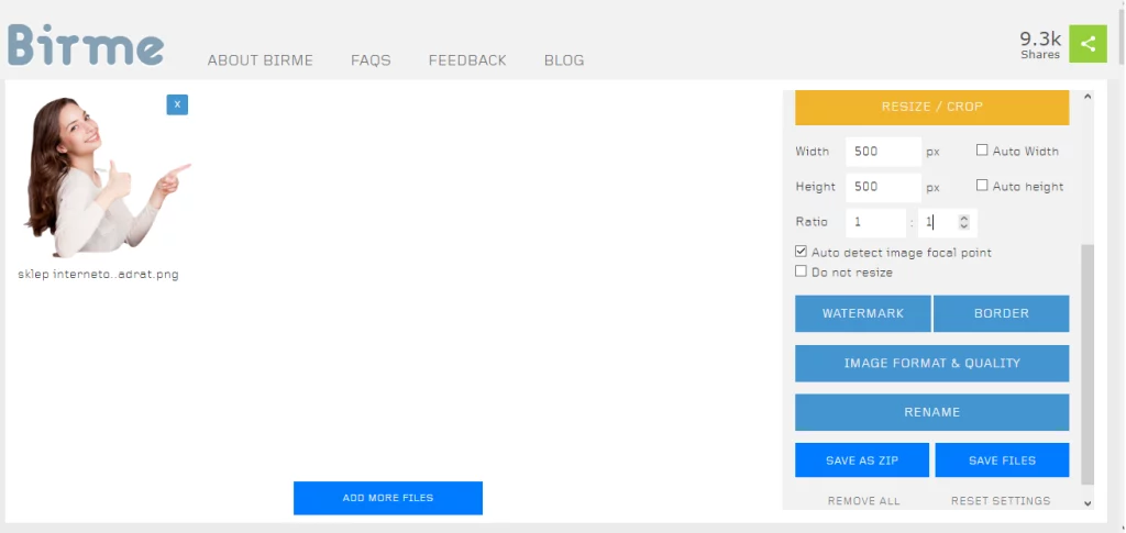 Wpisz pożądaną szerokość (width) i wysokość (height) obrazu. Ustaw współczynnik proporcji, wpisując odpowiednie wartości w polu „Ratio”, aby estetycznie przyciąć zdjęcie. Następnie najedź kursorem na obraz i przesuwając ramkę w górę i w dół (lub w prawo i w lewo – w zależności od wpisanych parametrów), zdecyduj o ostatecznym kształcie grafiki. Birme to świetne narzędzie do tworzenia estetycznych miniaturek – korzystając z dostępnych po prawej stronie opcji, możesz również skalować zdjęcia do kwadratu.
