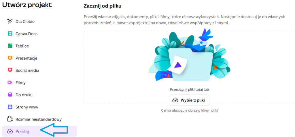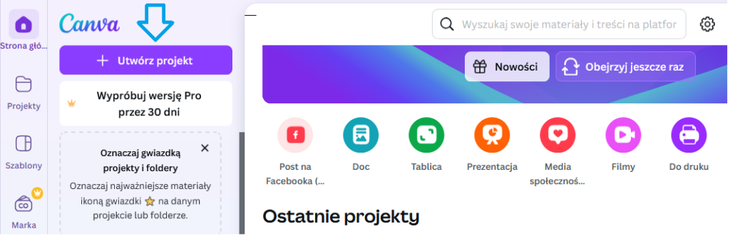 Wystarczy zalogować się na stronie i kliknąć “Utwórz projekt”: