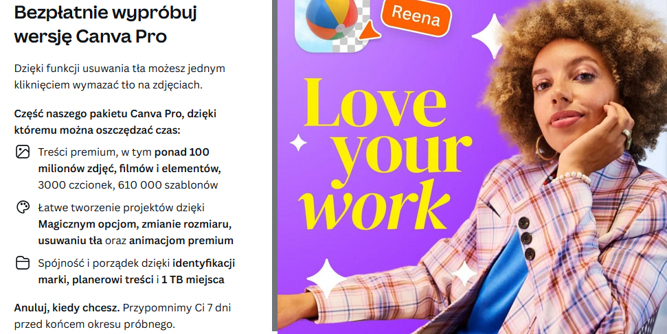 Innym narzędziem, za pomocą którego możesz w prosty sposób usunąć tło ze zdjęcia, jest Canva. Usuwanie tła w Canva dostępne jest w wersji Pro, którą możesz testować za darmo przez 30 dni.