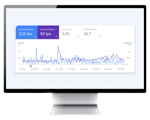 Znaczący i mierzalny wzrost liczby wyświetleń oraz kliknięć z wyników wyszukiwania dla precyzyjnych fraz biznesowych. Agencja zbudowała wizerunek niekwestionowanego eksperta od retencji klientów, przyciągając na stronę wysokiej jakości leady (B2B) poszukujące zaawansowanych systemów lojalnościowych, udowadniając skuteczność przemyślanej strategii treści.